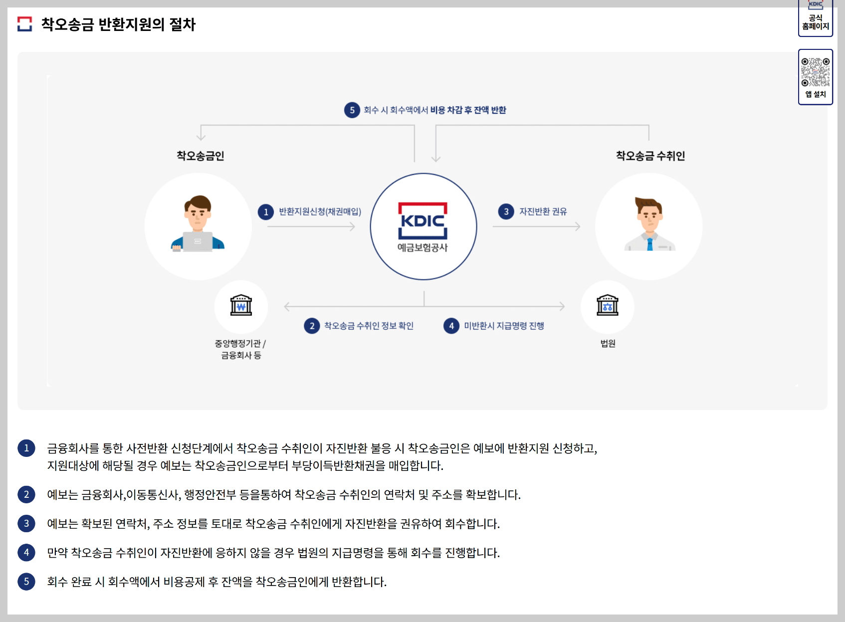 착오송금반환지원 제도는 금융위원회와 예금보험공사가 운영하는 공적 반환 지원 시스템으로,