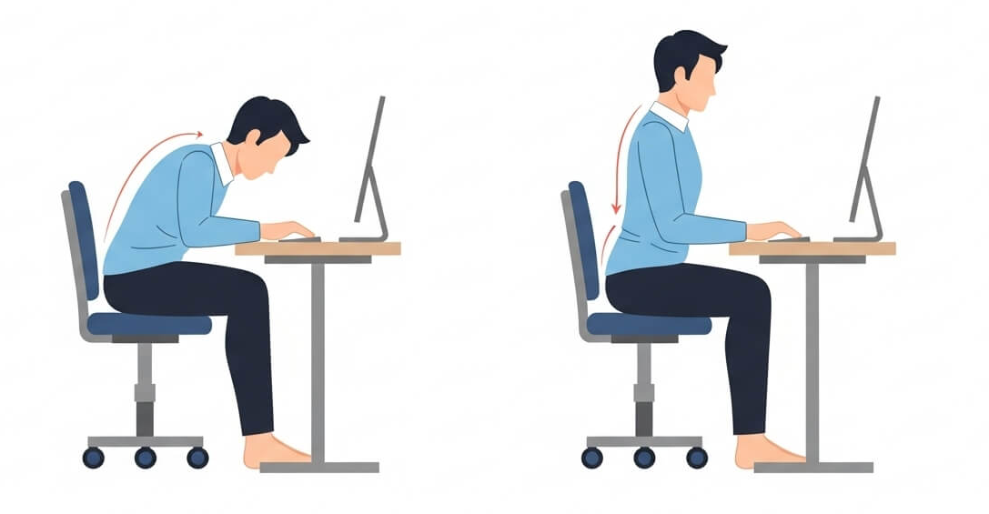 - 다리를 꼬거나 한쪽으로 체중을 싣는 자세 피하기